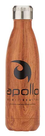 Appeal to campers, cyclists and outdoor enthusiasts with this wood grain-patterned bottle (APOLLO17WG). It has double-wall copper insulation and a twist lid; goldbondinc.com