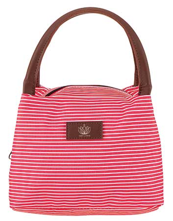 This striped cooler lunch bag (3290) comes in several colors, including vibrant red. Includes foil insulation and leatherette patch; hitpromo.net