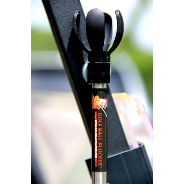 asi/57053 Golf Ball Plucker LLC #001 The brand-new Golf Ball Plucker can be your go-to tool to pluck your golf ball from a safe sitting position in your golf cart. It's made of stainless steel and plastic, measuring 8 1/2" and extending to 31".