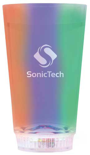 This 16-oz. acrylic tumbler (3LP16) includes three LED lights: red, green and blue. Users can set it to one of six light effects, including blinking and alternating fade; howw.com
