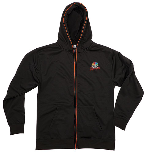 Take an apparel program to new heights with this glow full-zip hoodie (8668) with electroluminescent piping on the placket and hood and three light-up settings; jamericablanks.com