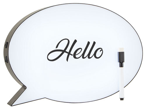 Want a message to be seen? Jot it down on the speech bubble light box message board (OS966). The unit is easy to hang and runs on either batteries or AC power; koleimports.com