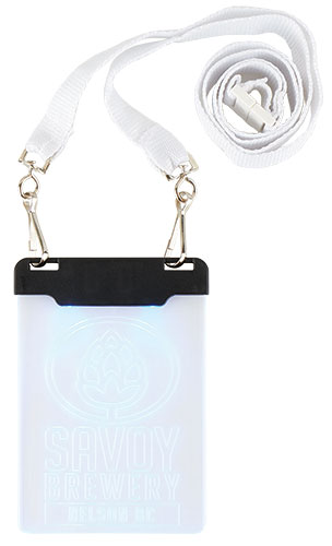 This sound-activated blue LED badge (LIT446) is ideally suited for music festivals and concerts. It can also be a safety item for nighttime joggers and dog walkers; brighterpromotions.com